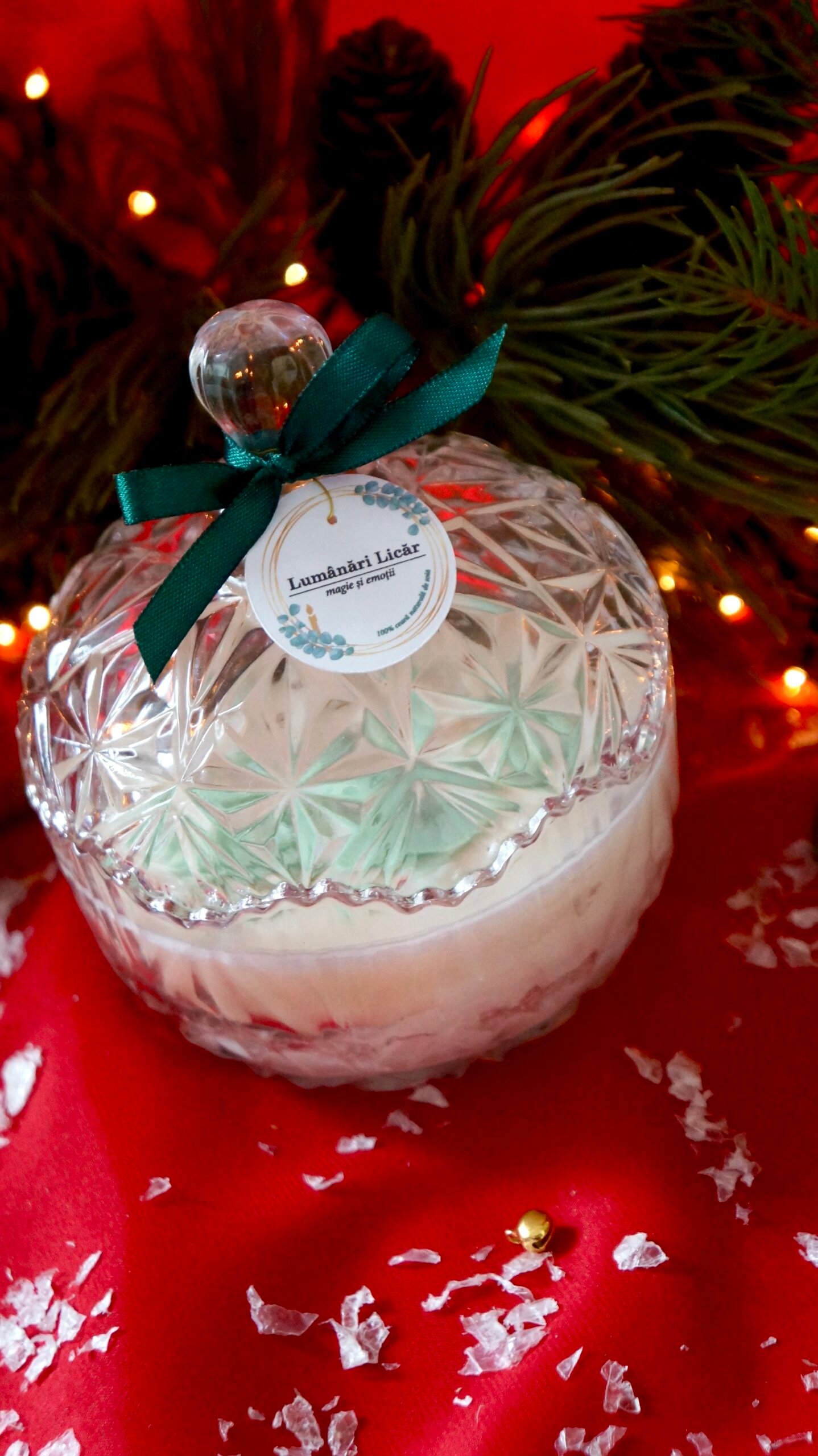 Lumânare parfumată în recipient elegant tip bombonieră de sticla.