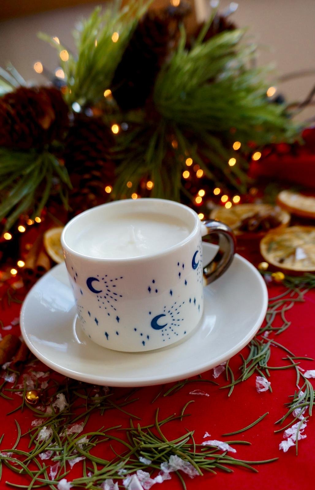 Lumânare parfumată în ceșcuță mică și elegantă cu fitil din bumbac.