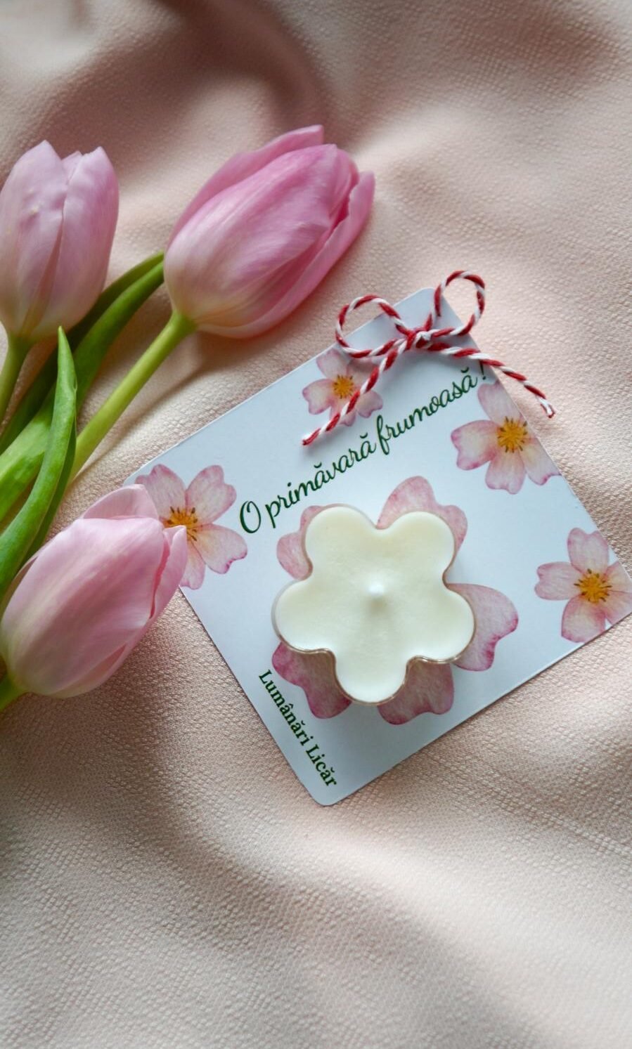 Lumânare parfumată din ceară de soia, turnată în formă de floare este un cadou perfect .